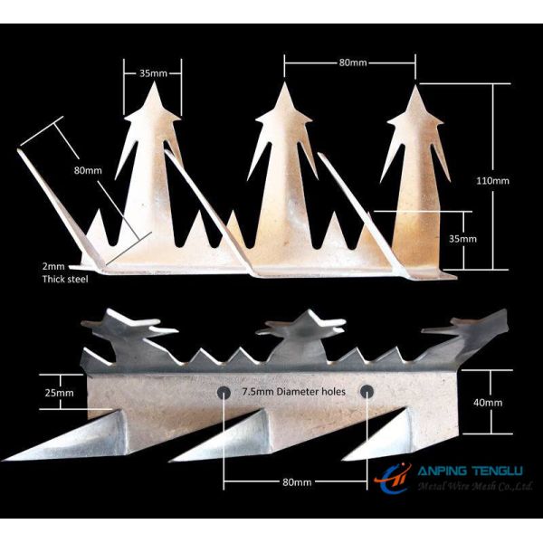 Metal galvanized stainless steel wall spikes 2.4 feet wide areas.